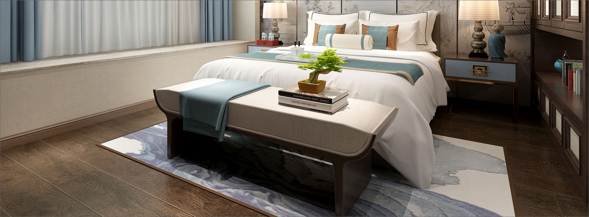 新中式風格是富含千年底蘊的東方中式風格與摩登時尚的現代風格彼此相遇結合,其精華之處在于以“一器一物皆是景,細微之處有乾坤”的古意為出發(fā)點,追隨時代的潮流,功能空間相互滲透,色彩空間相互碰撞,消除了傳統(tǒng)中式風格的沉悶和厚重,力圖在惹人癡迷的現代輕奢簡約中彰顯出傳統(tǒng)中式意蘊的雅致逸趣。